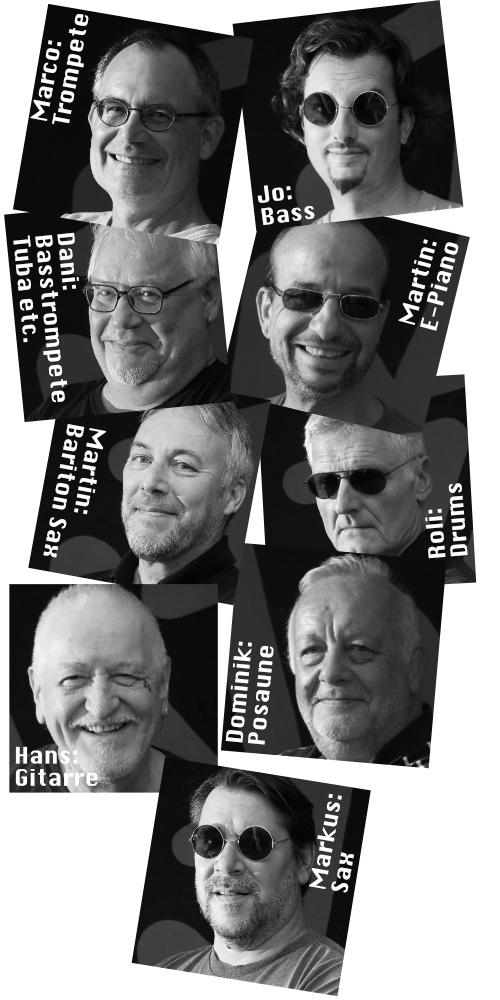 eine neun Mann starke Formation und spielen unterschiedliche Stile aus den Bereichen Jazz, Swing, Funk, Blues, Salsa oder Reggae.